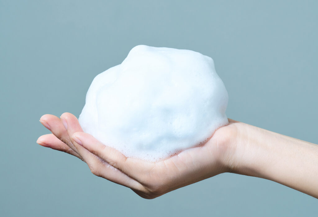 [2] 1プッシュで手のひらいっぱいに広がり、へたりにくい泡