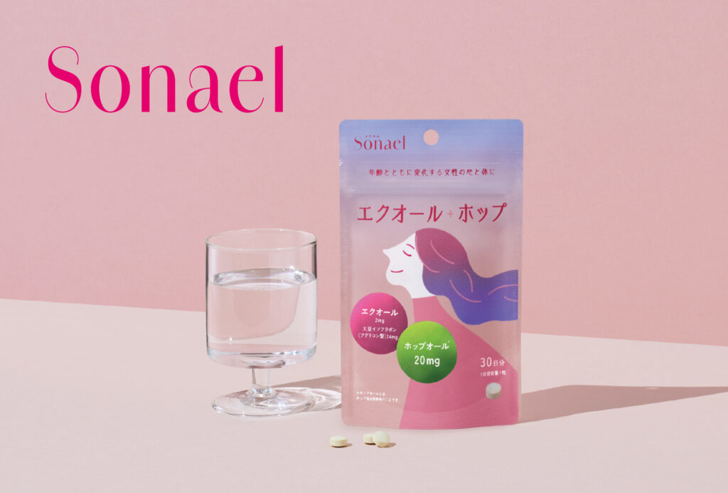 Sonaelは、年齢を重ね、心と体に変化を感じはじめた方に向けて、美容と健康をサポートするスマートフェムケアブランドです。エクオール+ホップは、エクオールと大豆イソフラボンに加え、ホップ由来の「ホップオール*3」を配合し、トゲトゲ・どんより・モヤモヤなどの気分のゆらぎをサポートします。