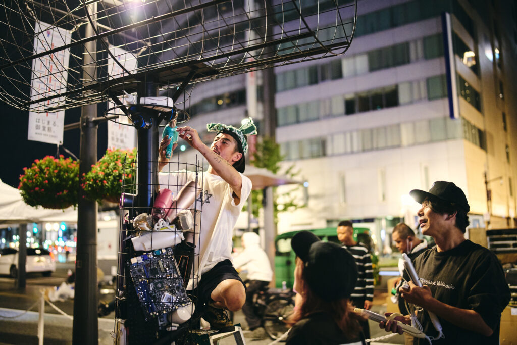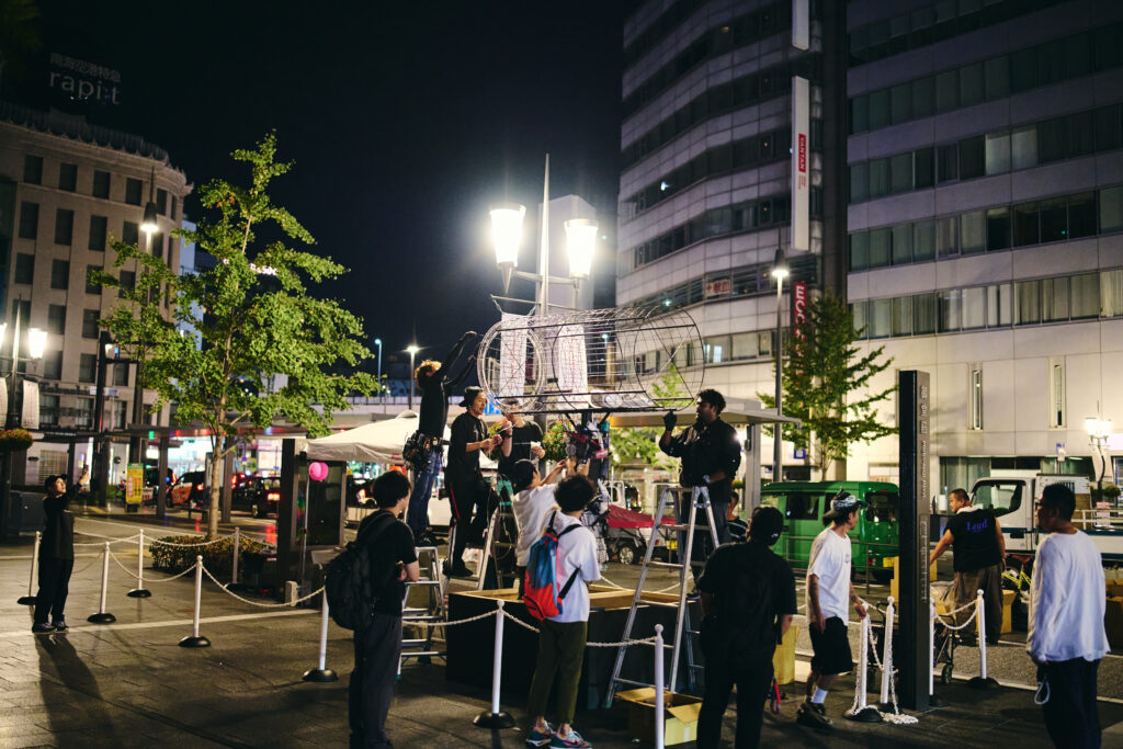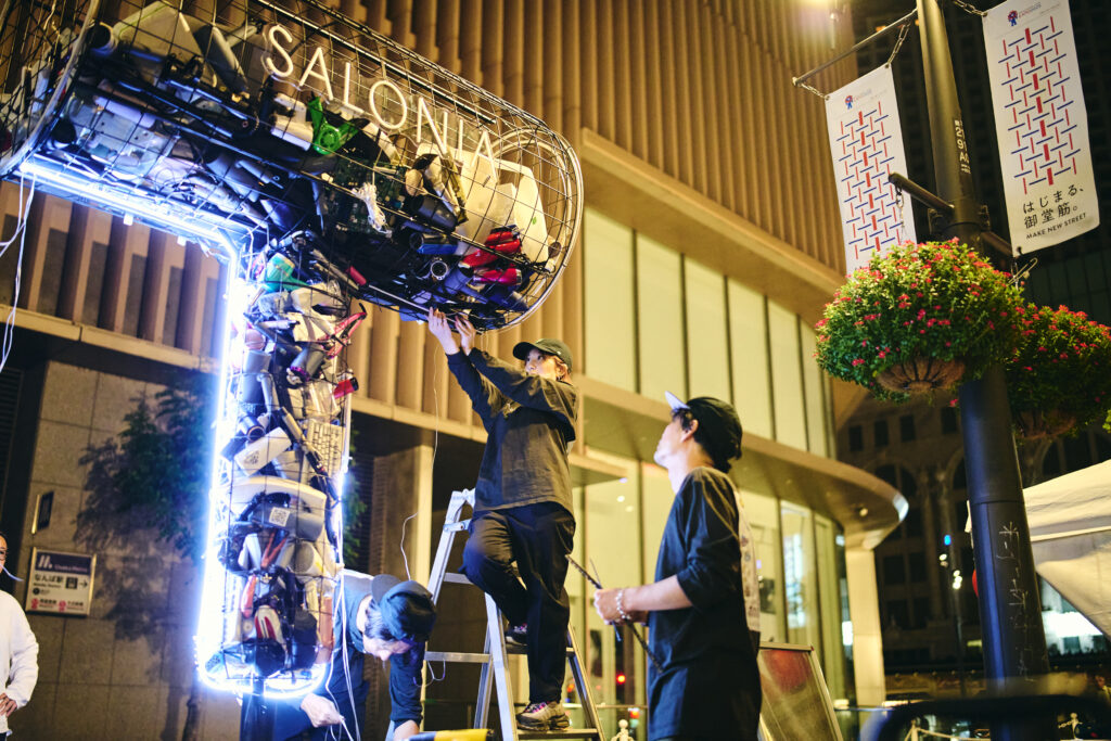深夜の設置時、大阪・御堂筋の難波エリアはまだまだ賑やかな様子で、通行する人たちから「ドライヤーの形だ!」「SALONIAだ!」というつぶやきも聞かれ、身近なブランドとして支持を得ていることがうかがえました。