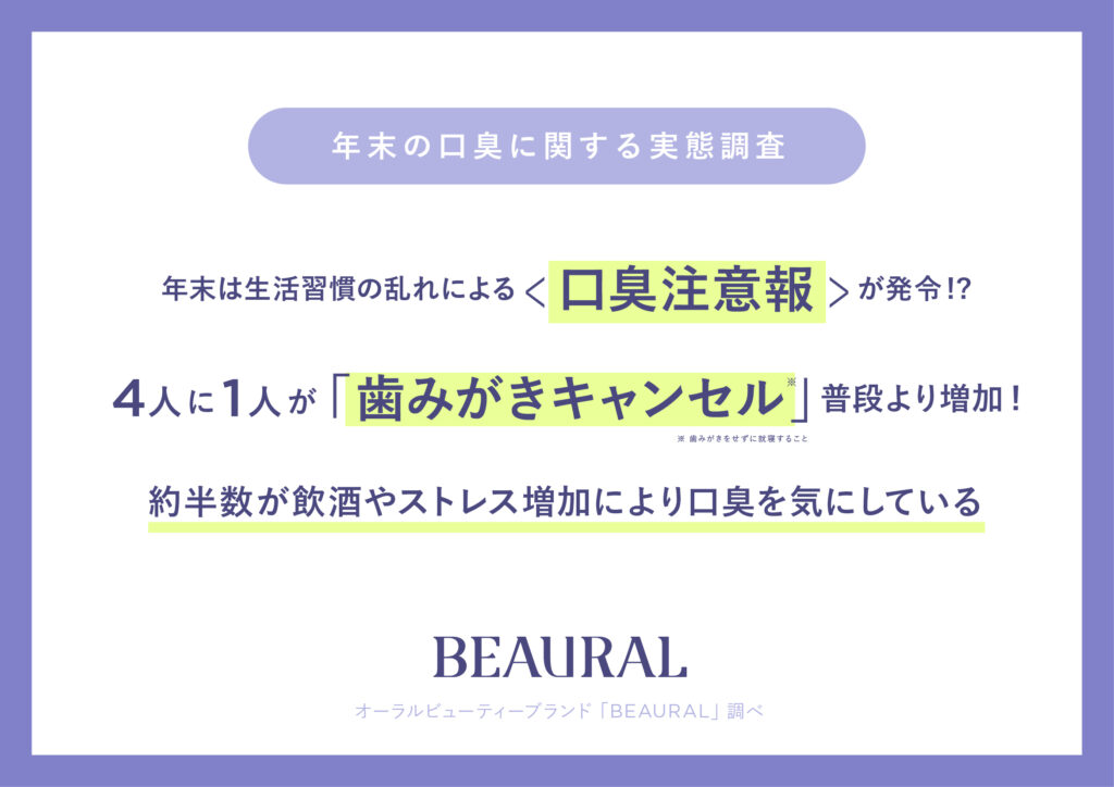 【調査】 年末は生活習慣の乱れによる<口臭注意報>が発令!?4人に1人が「歯みがきキャンセル*」普段より増加!約半数が「飲酒やストレスの増加による口臭」を気にしている