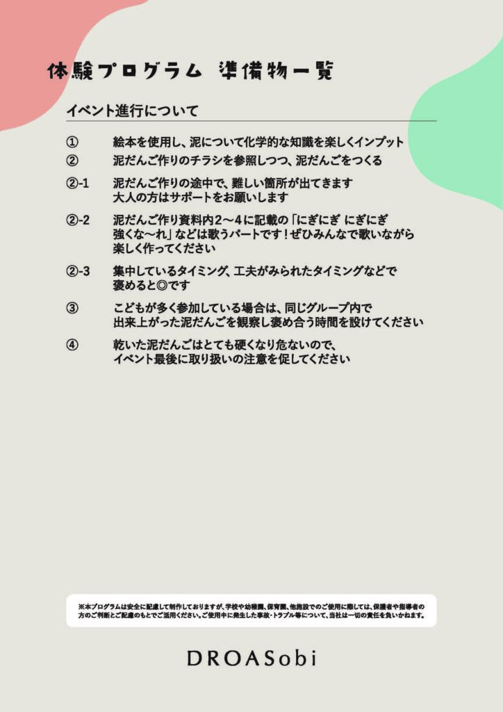 「DROASobi~どろのふしぎ体験プログラム~」について