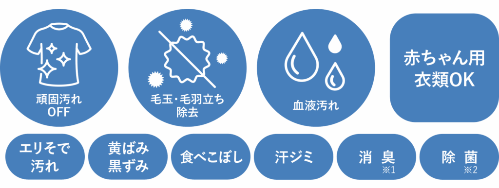*1 実験環境下で2時間つけおき後に洗濯にて検証汚れの程度や種類によって効果は異なります。