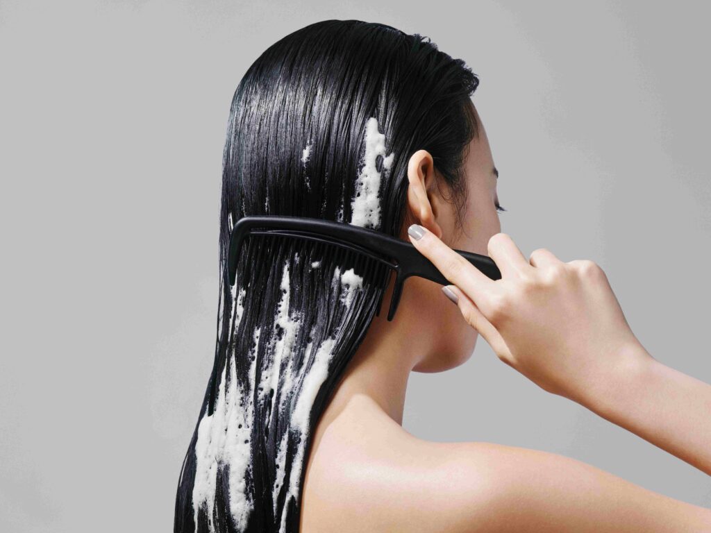 ①シャンプー後、髪の水気を切り、トリートメントコームで髪をとかす